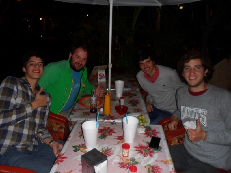Am ersten Freitag war ich dann fit genug, um mich Alejandro (Alex – dem Hostelbesitzer) und einigen anderen anzuschliessen und auszugehen. Im Internacional war ich erst überrascht dass Alejandro auch hinter der Bar arbeitete und dann etwas verwirrt, dass er kurz darauf wieder auf der anderen Seite stand. Etwas später sah ich ihn dann doppelt (nein, er war der/das einzige!) – seither kenne ich auch seinen Zwillingsbruder Fernando 😉 Später ging’s dann zu viert noch ins Unplugged. Die Livemusik war aber so laut, dass ich es vorzog, auf der Terrasse zuzuhören. Von dort hatte ich auch einen guten Ausblick auf’s Pantomimenkino: Hansi und Tere mit “kleinen” Meinungsverschiedenheiten… Alex meinte, ich hätte mich bereits auf den Rückweg gemacht und so verliessen auch sie den Klub – wo ich mich dann irgendwann fragte, weshalb ich nun alleine dort sei. Schliesslich fand ich dann ein Taxi, das mich zurückbrachte.