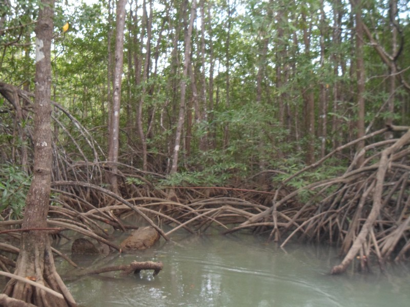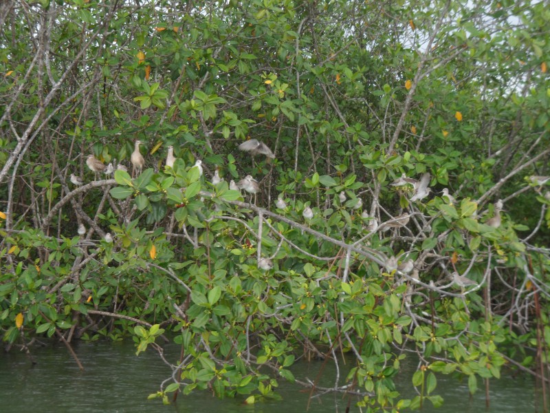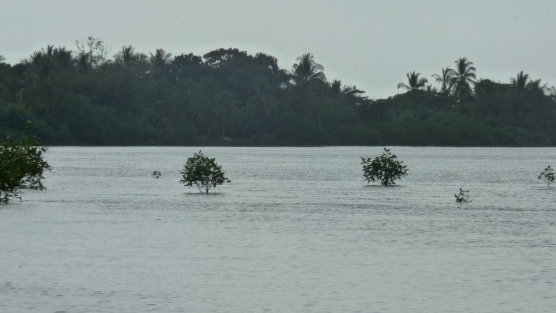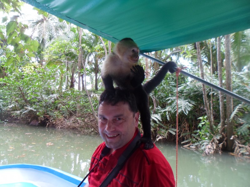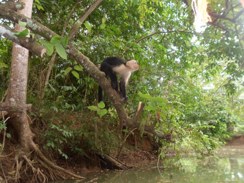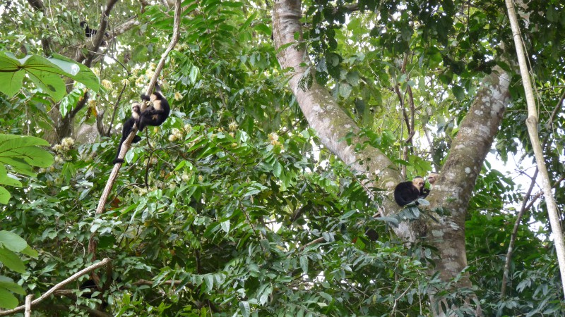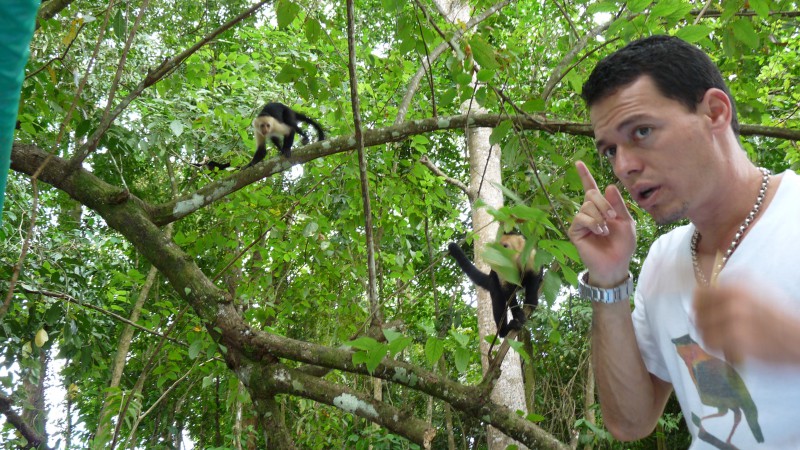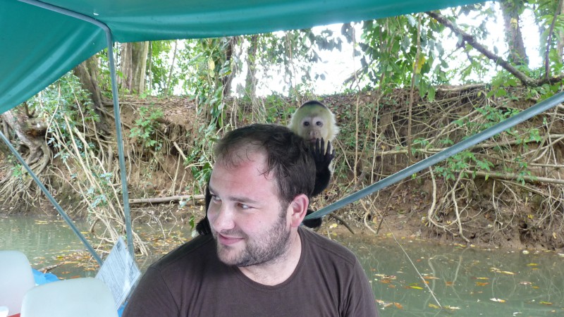 Wir starteten früher als die meisten Nachbarn ins neue Jahr und machten uns mit unserem Pickup auf den Weg Richtung Nordwesten. Bald liessen wir die dichtbewaldete Península Osa hinter uns. Kurz nach einem kurzen Mittagshalt an einem Strand fuhren wir in der Nähe des Nationalparks Manuel Antonio an einem Schild vorbei, auf welchem Bootstouren mit Tierbeobachtung angeboten wurden. Kurze Zeit später sassen wir alleine mit unserem Führer im Boot und wir mussten nicht lange warten, bis wir die zweite Affensorte zu Gesicht bekamen: Weisskopfäffchen. Die grosse Gruppe lebt eigentlich etwas näher am Strand, kommt aber immer wieder in die Nähe, da hier einige Obstbäume und -palmen stehen. Unser Guide lockte dann den Vorwitzigsten (oder den, der in der familieninternen Lotterie gewonnen hatte) mit etwas zerdrückter Banane an und kurz darauf sass mir das wuselige Ding auch schon auf Schultern und Kopf. Papi wollte das erst nicht ausprobieren. Nach 3-4 mal nachfragen – man will ja schliesslich sicher sein – war es dann zu spät, um es noch zu stoppen und schliesslich genoss er es doch noch 😉 Im weiteren Verlauf sahen wir noch einige Vögel und erhielten interessante Erklärungen, wie sich die Mangrovenwälder entwickeln. Nach dieser Tour fuhren wir weiter nach Puntarenas zum Fähranleger. Wir hätten gleich noch einschiffen können, wollten aber nicht mehr übersetzen, da es bereits zu dunkeln begann und die andere Seite weniger stark besiedelt ist. So suchten wir uns ein Hotelzimmer. Nach dem Abendessen spazierten wir noch ein bisschen der Promenade entlang, wobei ich mir mal eine Pipa gönnte. Das ist eine noch nicht ganz reife Kokosnuss, deren Milch weniger süss ist und deren Fruchtfleisch nicht gegessen wird. Nun waren uns die Colones definitiv ausgegangen und wir machten uns auf die Suche nach einem Geldautomaten. Beim dritten Kasten klappte der Bezug dann schliesslich.