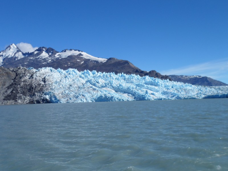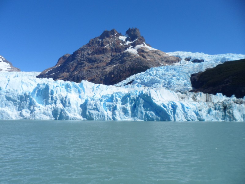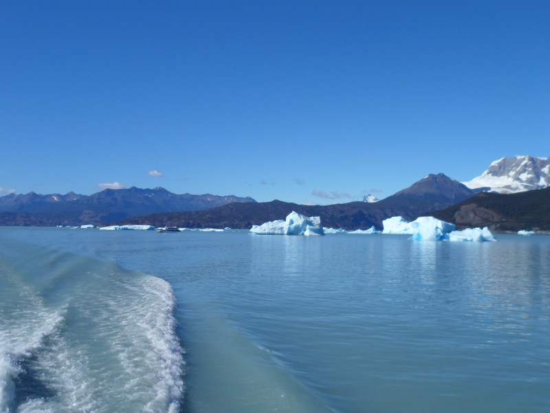 In El Calafate erwischte ich einige Tage mit für diesen Ort aussergewöhnlicher Hitze von über 30°C. Ich kam durch die Hilfe bei der Anfahrt bereits am frühen Nachmittag an und machte mich gleich auf, um eine Fahrt zu den Gletschern zu buchen. Am anderen Morgen ging’s dann bereits um 07.15 los. Erst mit dem Bus zum Lage Argentino. Der ist ziemlich gross (ca. 1’560 km2) und entsprechend lange dauerte die Fahrt. Erst besuchten wir den Upsala-Gletscher. Als wir in die Nähe kamen, rannten alle zum Bug und liessen sich von Gischt und Wind nass spritzen. Aber dafür konnten sie ihre Kameras quälen und fleissig den Gletscher fotografieren. Ich spekulierte hingegen darauf, dass uns der Katamaran auch wieder zurück bringt und dazu umdreht. So geschah es dann auch tatsächlich und ich konnte trocken und ohne grosses Gedränge die Gletscher vom Heck aus geniessen 😉 Die weitere Fahrt führte uns dann zum Spegazzini- und schliesslich zum berühmten Perito-Moreno-Gletscher. Speziell an diesem ist, dass er immer noch wächst und dabei eine Seeenge schliesst. Alle paar Jahre wird der Druck des Wassers dann zu gross und es sprengt die Gletscherzunge. Kleinere Abbrüche können aber öfters beobachtet werden. Natürlich ging’s auch beim 2. und 3. Gletscher auf dem Schiff zu wie bei einer Europa-in-10-Tagen-Reise und einige Kameras drohten zu schmelzen. Immerhin hätten sie sie ja mit dem Eis kühlen können, das die Crew von einem nahen Eisberg holte. Insgesamt waren die Gletscher und die Eisberge – aber auch die ganze Umgebung – doch eindrücklich. Schade, dass das Erlebnis durch allzu viel Massentourismus-Feeling getrübt wurde. Am nächsten Tag machte ich dann noch einen Ausflug mit einem Allradfahrzeug zu einer Estancia im Schutzgebiet. Mit dabei waren auch eine Zweier- und eine Dreiergruppe aus Buenos Aires. Ausser dem Genuss der schönen Gegend konnten wir auf ca. 700 m.ü.M. auch noch einige Fossilien betrachten und zum Abschluss des Tages gab es dann noch ein leckeres Abendessen.