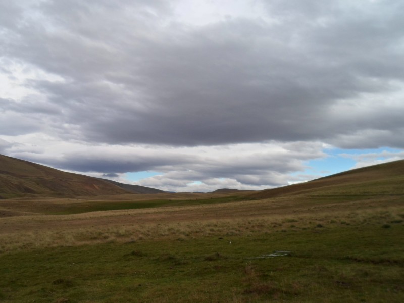 Bereits beim aufstehen regnete es, hörte aber bis zum Frühstück wieder auf, nur um dann beim aufladen erneut zu beginnen. Also machte ich mich regendicht verpackt auf den Weg. Heute freute ich mich schon auf den Aufstieg zur Passhöhe, wusste ich doch, dass Río Turbio ca. 350 m höher liegt als Puerto Natales. Ich erreichte also nach 6 km kurz nach dem argentinischen Zoll die Höhe und machte mich an die Abfahrt. Der Nieselregen hatte übrigens kurz nach dem Start wieder aufgehört, während der ersten Zollabfertigung wieder angefangen und bis zum chilenischen Zoll erneut aufgehört. Zwischendurch konnte ich sogar mal mit über 65 km/h talwärts sausen. Weiter unten begann der Wind dann ein wenig zu spinnen: auf einem geraden, ebenen Stück kam er mal von hinten (35 km/h), einige Sekunden später von vorne (15 km/h), dann mal von links, mal von rechts. Allerdings wusste ich, dass die gesamte Tagesstrecke nur ca. 30 km lang war und so radelte ich frohen Mutes wieder zum Hostel.