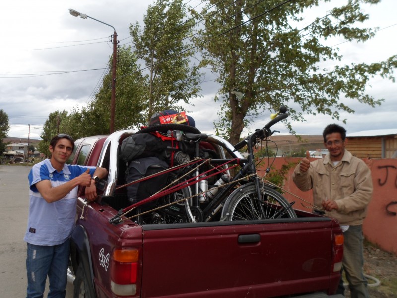 Am anderen Morgen fuhr ich um ca. 07.30 bei knapp 4-5°C los! Nachdem es die erste Stunde noch recht flott lief, wurde der Wind danach immer mühsamer. Zudem war die Schotterpiste doch wesentlich schlechter, als ich das noch vom ersten Mal mit Rückenwind in Erinnerung hatte. Unterwegs traf ich auf Sam und Po aus Bournemouth (England), wo ich während der Lehre meinen Sprachaufenthalt hatte. So erreichte ich um die Mittagszeit wieder einmal Tapi Aike und ass gemeinsam mit einem polnischen Wanderer etwas. Danach wollte ich versuchen, per Autostop nach Río Turbio zu kommen. Nach weiteren 25 km hatte ich mich bereits darauf eingestellt, doch wieder bis Cerro Castillo zum zelten zu fahren, als doch noch ein Pickup anhielt. Die drei Brüder Escobar nahmen mich die knapp 60-65 km mit und luden mich direkt vor einem Hostel ab. Die drei sind Zimmerleute aus dem Norden, welche die Arbeit ganz in den Süden verschlagen hat.