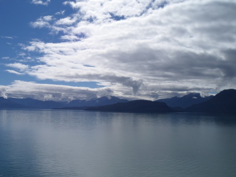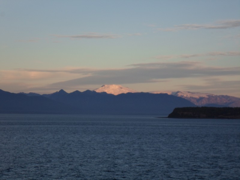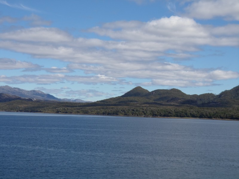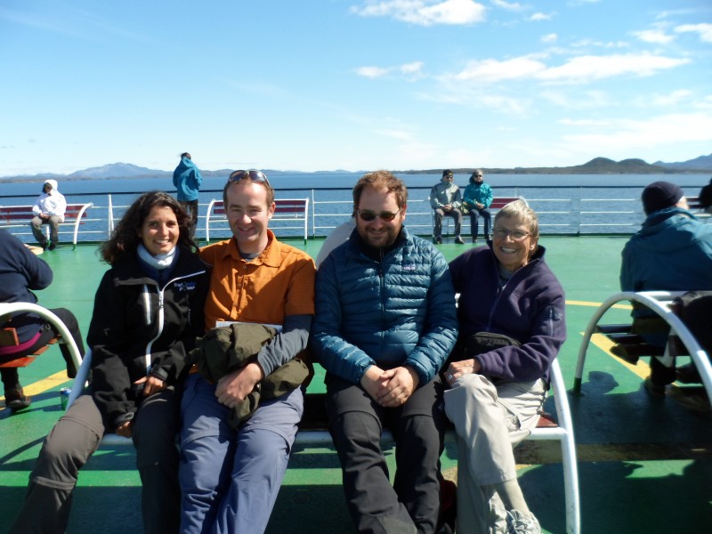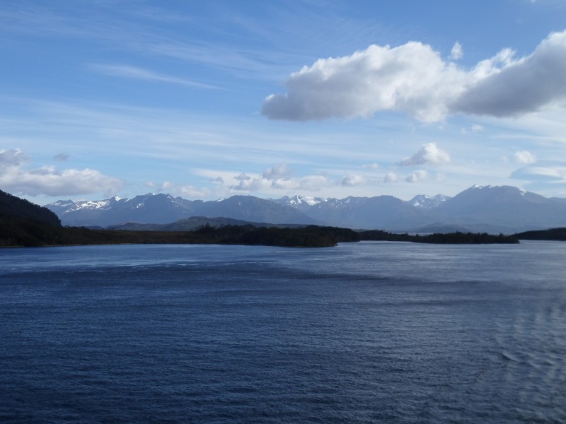 Die Fahrt führte durch eine wunderschöne Landschaft mit vielen Kanälen und Fjorden. Am ersten Tag besuchten wir sogar einen Gletscher. Von Zeit zu Zeit zeigten sich Delfine und einige Passagiere konnten auch Orcas beobachten. Die ganzen drei Tage hatten wir Wetterglück und die Sonne schien oft. Zwischendurch wurden verschiedene Infoveranstaltungen (Säugetiere, Vögel, Entstehung Patagoniens usw.) gezeigt. Die Animationsveranstaltungen wie Karaoke, Bingo und Videos liess ich aber bleiben und ging lieber ein bisschen auf dem Deck spazieren oder lesen. Spanisch war hier eher eine untergeordnete Sprache, es schien viel mehr englischsprechende Passagiere zu haben und auch Deutsche und vor allem Schweizer waren sehr gut vertreten. Ich traf auf dem Schiff die beiden Franzosen Gilles und Jacques wieder, die in Puerto Natales im gleichen Hostel übernachtet hatten. Zudem war ich ja bereits mit Irene, Yolanda und Markus am Vorabend essen und wir hatten uns gemeinsam auf’s Schiff begeben. So gab es auch noch ein kleines Jass-Duell 😉