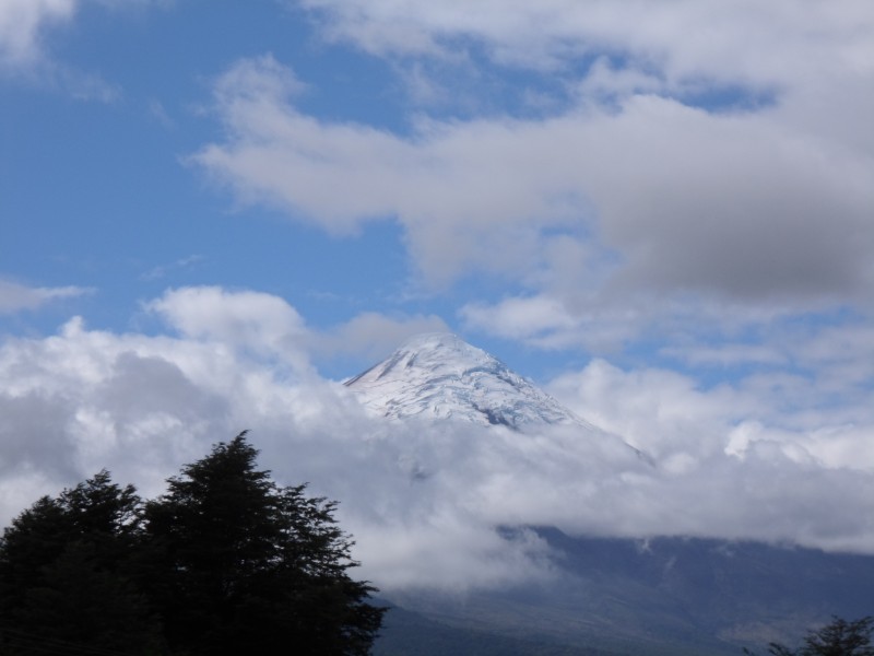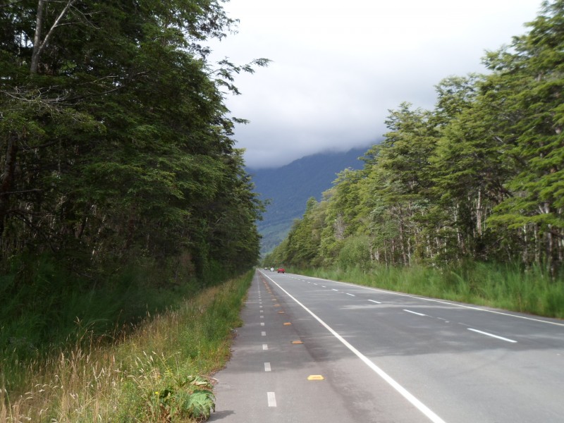 Am nächsten Vormittag trafen wir um ca. 10.30 beim vereinbarten Restaurant ein, wo wir mit Irene erst mal was warmes tranken und später auch frühstückten. Der Tag war regnerisch und mit viel Plauderei verging die Zeit rasch. Also bestellten wir irgendwann auch noch unser Mittagessen. Später stiess auch Peter wieder zu unserer Runde. Ihm war am Vorabend während dem Essen das Auto aufgebrochen worden. Dabei wurden die Kamera mit allen Fotos und das I-Pad mit dem gesprochenen “Tagebuch” gestohlen. Wirklich ärgerlich, hatte er uns doch noch gefragt, wie wir Sicherungen machen würden. Leider ist er nicht mehr rechtzeitig dazugekommen. Schliesslich entschlossen wir uns doch noch zur Weiterfahrt nach Puerto Varas und Peter bot uns an, das Gepäck im Auto mitzunehmen. Der Regen war zum Glück vorüber und wir folgten ihm in die Tiefgarage, um umzuladen. Als wir die Tiefgarage wieder verliessen, mussten wir als erstes unser Regenzeug montieren – und danach schüttete es, was nur runterging. Die hügelige Strecke war zum Glück nur kurz und um 18.30 trafen wir Peter beim vereinbarten Restaurant. Wir folgten ihm zum Hostel und checkten selber auch gleich dort ein. Danach gingen wir gemeinsam essen und alle waren froh, in dieser Nacht ein Dach über dem Kopf zu haben.
