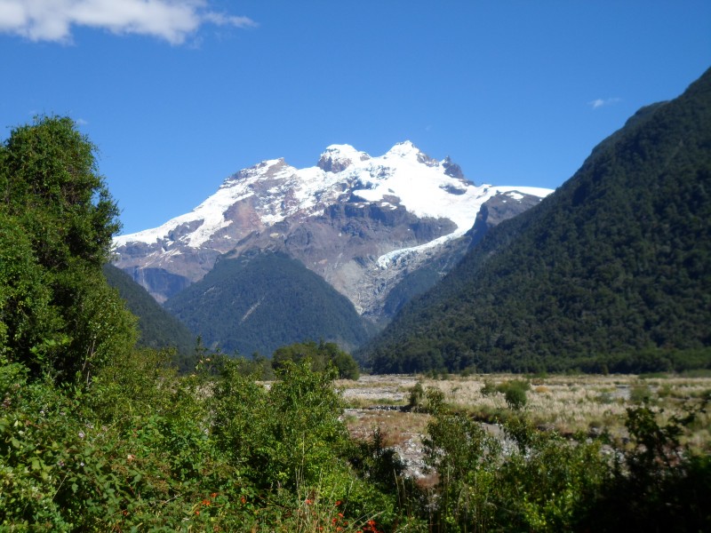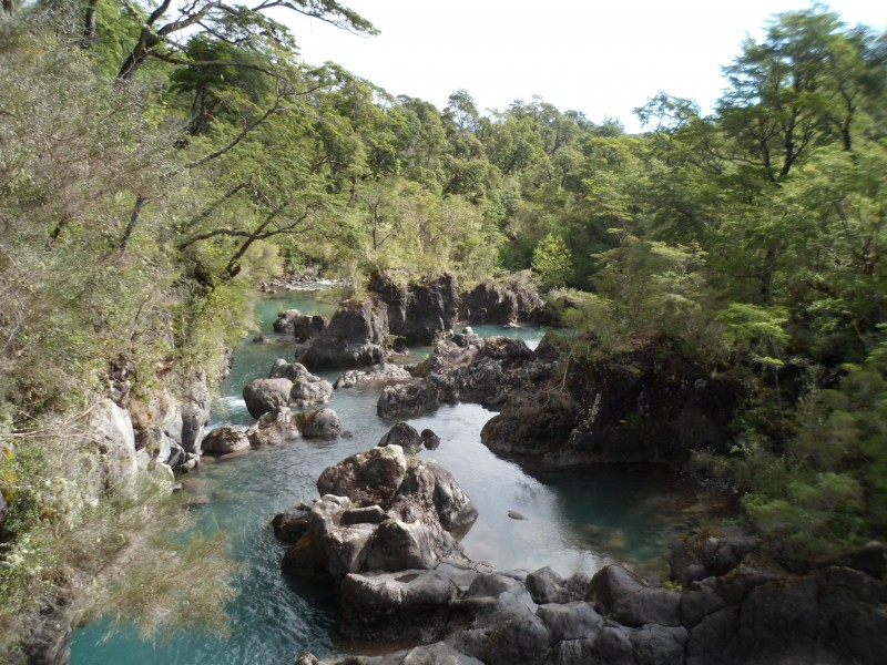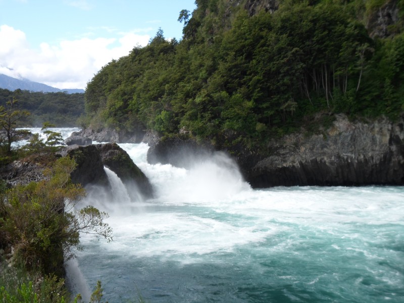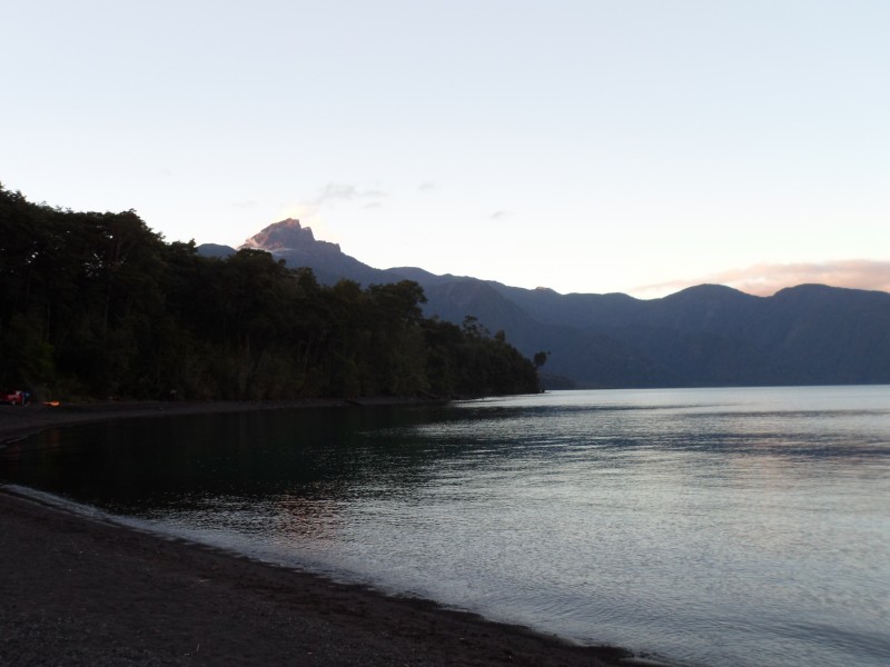 Nun sollte die Radlerei wieder losgehen und wir machten uns nach dem Einkauf kurz vor Mittag auf den Weg. Die Wolken liessen Regen erwarten, tatsächlich nieselte es aber nur leicht und die Sonne kam mehr und mehr hervor. Seit unserer Abfahrt in Puerto Natales hatte sich die Vegetation stark verändert. Wir waren zwar immer noch in Patagonien (einfach ca. 2’000 km nördlicher), das karge Buschland war aber üppigem Wald gewichen und es war richtig schön, das Grün auch zu riechen. Beim Zmittag trafen wir nochmals auf Gilles und Jacques, später noch auf einige andere Bekanntschaften vom Schiff. Am Nachmittag besuchten wir einen Wasserfall und etwas später erreichten wir Petrohue. Beim Fährschalter wurden wir auf den nächsten Morgen vertröstet und so machten wir uns auf zum Campingplatz. Dieser ist sehr schön am See gelegen und unser Bereich hatte sogar einen eigenen Tisch mit Bänken. Dass der Weg zur Toilette wie die meisten Zeltplätze die ganze Nacht beleuchtet waren, im WC selbst aber keine Lampe vorhanden war, drückte mir ein Fragezeichen auf die Stirn, war aber eigentlich ja egal…
