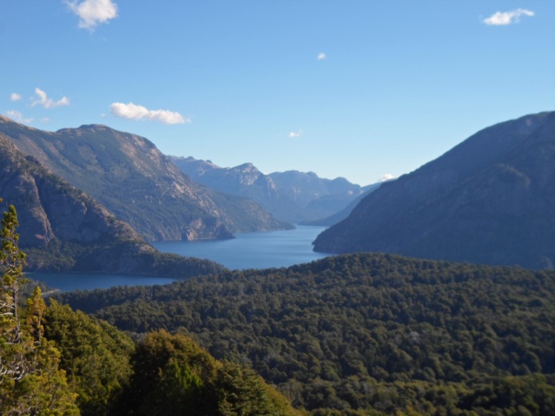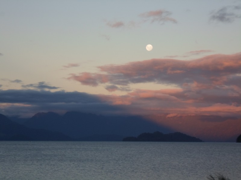 Unser nächstes Ziel war Bariloche – oder wie es komplett heisst: San Carlos de Bariloche. Wir hatten uns eine Route durch zwei Nationalparks auf chilenischer und argentinischer Seite ausgesucht und mussten dazu mit drei Fähren fahren. Zwischen der ersten und zweiten Fähre war ein ca. 30 km langes Stück Schotterstrasse, das auch noch über einen Pass führte. Nach zähen Verhandlungen stimmten wir der Lösung des Angestellten zu. Unser Gepäck sollten wir mit in den Bus nehmen, die Velos würden sie an der Grenze (oben auf dem Pass, 4 km vor dem nächsten See) deponieren, von da müssten wir wieder selber fahren. Das war zwar saumässig unlogisch, aber was soll’s… Wir vereinbarten allerdings mit dem Busfahrer, dass er zumindest das Gepäck doch noch bis zur nächsten Fähre transportiert und machten uns mit unbepackten Rädern auf die Abfahrt. Am See mussten wir erst die Zollangelegenheiten erledigen, danach wurden wir von Mücken beinahe aufgefressen. Unglaublich, dass sich diese Dinger nicht an die Packungsanweisung halten können. Schliesslich hatte ich den Insektenschutz doch extra auf spanisch gekauft. Am nächsten Morgen zählte ich 15 Stiche – das waren allerdings nur jene, die durch die Radlerhosen gingen! Von der letzten Fähre konnten wir erst um ca. 20.00 runter und die 25 km nach Bariloche schienen uns im hügeligen Gebiet zu weit. Auch zum nächsten Campingplatz waren es noch 10 km. Wir folgten einem B+B-Schild, allerdings war dieses Haus schon voll belegt. Etwas weiter lag direkt an der Strasse die Hosteria Katy und diesmal hatten wir Glück.