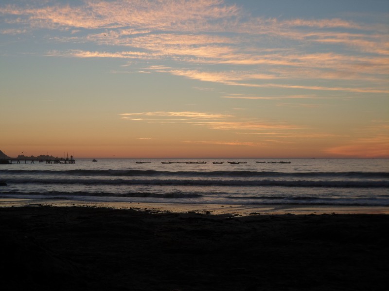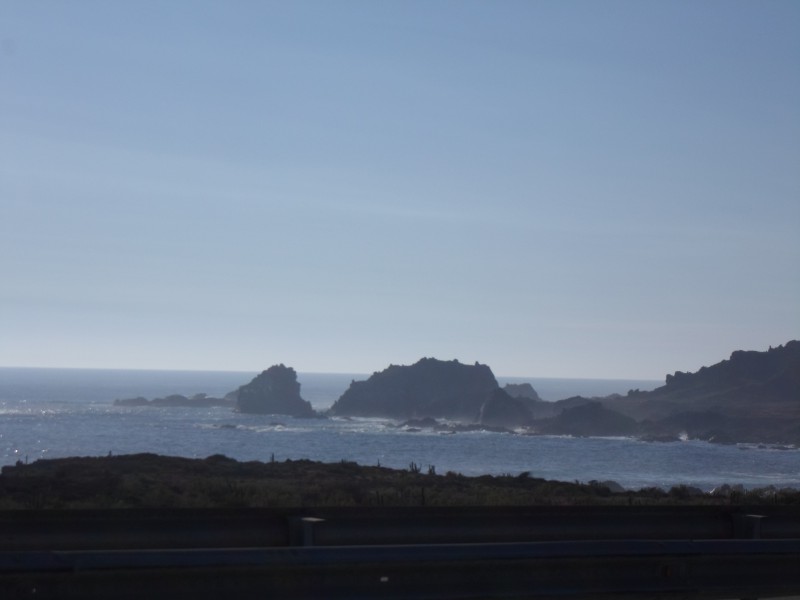 Nach dem Abflug meiner Reisegefährten nach Boston war ich also wieder alleine unterwegs. Ich liess mein Apartment im Stadtzentrum hinter mir und machte mich bei schönstem Wetter auf die Weiterreise. Dazu fuhr ich erst mal bis zum ersten Tunnel. Dort hatte es ein Telefon, um einen Pickup für die Durchfahrt anzufordern. Da etwas weiter aber noch ein weiteres Loch im Berg wartete. versuchte ich, per Autostopp gleich durch beide Tunnels zu gelangen. Auf der anderen Bergseite erwartete mich anderes Wetter. Ich blieb deshalb noch ein bisschen sitzen und liess mich kurz vor Viña del Mar bei feuchtnebliger Kälte abladen. Städte- und Strandgucken bei diesem Wetter machte nicht so wirklich Spass und so fuhr ich direkt auf der Umfahrung nach Concón. Dummerweise hatte diese Autobahn keinen Pannenstreifen, entsprechend vorsichtig musste ich auf den Verkehr hinter mir achten. Immerhin konnte ich bergab mal einen LKW überholen 🙂 In Concón suchte ich mir ein Zimmer und gönnte mir an meinem ersten Abend am Pazifik einen Strandspaziergang – immerhin in der Ferne war die Sonne zu sehen.