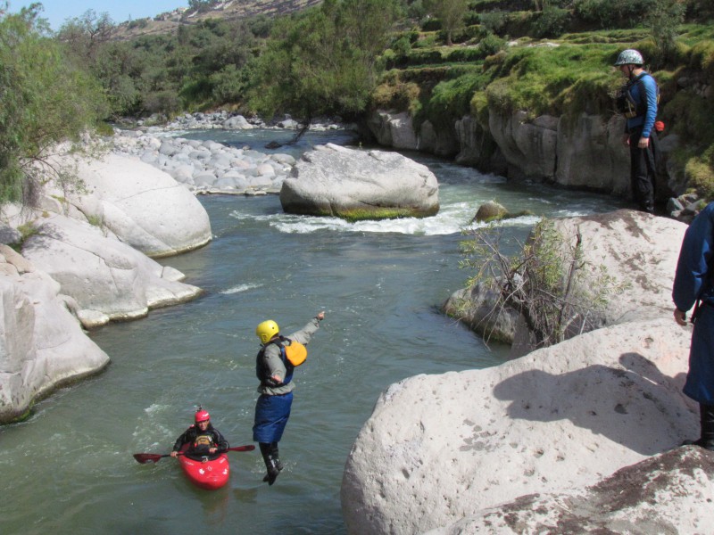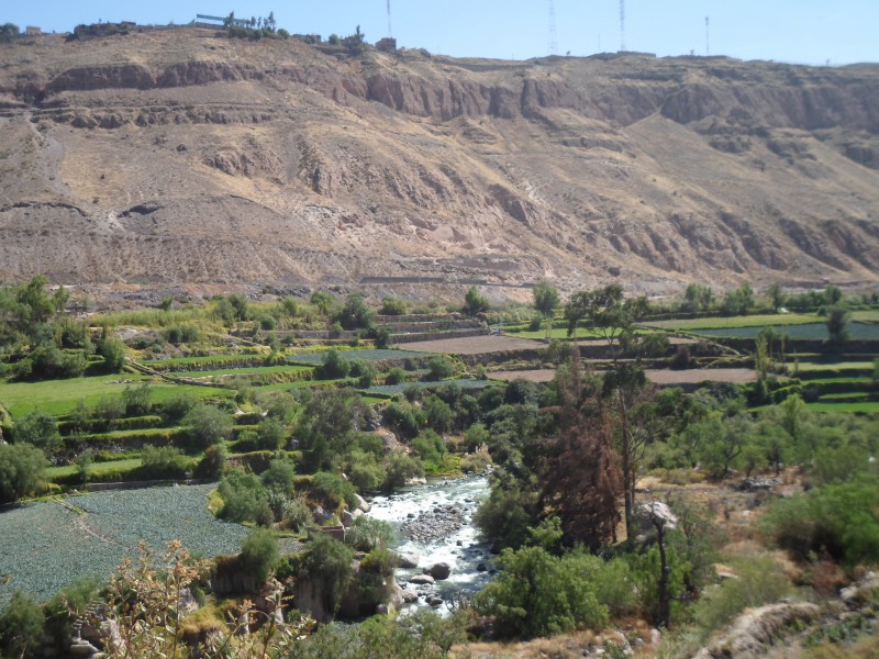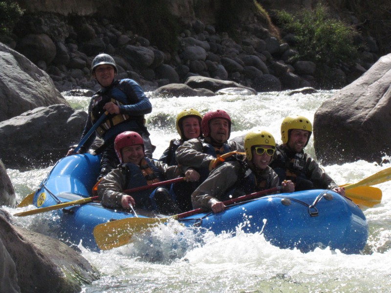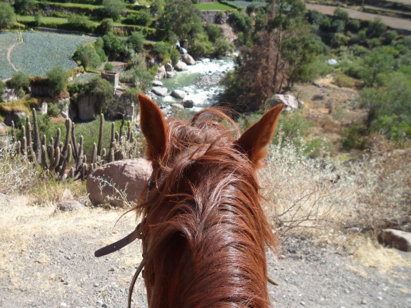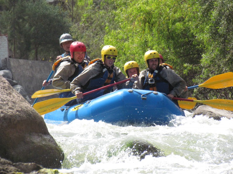 In den ersten Wochen machte ich nur einen kleinen Ausritt ins Valle Chilina, was soviel wie kaltes Tal heisst. Bei schönstem Sonnenwetter kam ich aber trotz kaltem Tal ins Schwitzen. Obwohl ich mich auf dem Rücken von Ricky Martin ja nicht besonders anstrengen musste, war ich nach dem Ausflug so platt, dass ich mich hinlegen und den Mittwochnachmittagskick auslassen musste. Nachdem nun schon einige Zeit ohne grosse Aktivitaet um war, lud mich Alejandra (Tochter von Percys Freundin Magda) ein, mir die Stadt ein wenig zu zeigen. Wir trafen uns am Montag an der schönen Plaza Cayma und spazierten zuerst zum Mirador Yanahuara und von dort dann weiter zum Hauptplatz Plaza de Armas. Nach einem späten Zmittag machte sie sich dann auf den Heimweg, während ich mich beim Touranbieter nach “meinen” Ausflügen erkunden wollte. Kurz zuvor hatten sich andere Interessenten angemeldet, sodass ich mich am Mittwoch zum Rafting und am Donnerstag zum Downhill vom Vulkan Chachani anschliessen konnte.