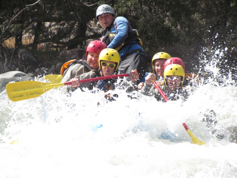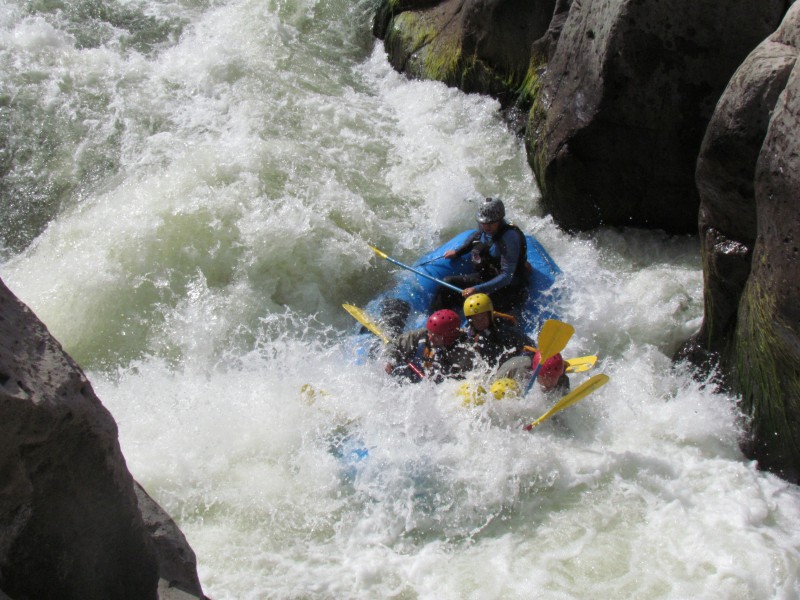 Bereits in Santiago versuchte ich erfolglos, einen Raftingausflug zu organisieren. So freute ich mich sehr auf die rasante Bootsfahrt. Diese fand im Rio Chili statt, dem kalten Fluss – naja, mit Neoprenkleidern geht’s trotzdem 😉 Unser internationales Boot (Belgier, Engländer, Holläderin, Italiener und ich) wurde von Guide Diego aus Pucón im chilenischen Seenland geführt. Wir ruderten fleissig, warfen uns auf Befehl sicherheitshalber ins Boot und witzelten über den Fahrer im Rettungskajak, der sein Paddel genau an der dümmsten Stelle verloren hatte. Gegen Ende konnten wir dann noch von einem Felsen in den Fluss springen. Dabei stiess ich mit den Füssen am Grund an, was zur Folge hatte, dass es die Sohle vom linken Neoprenschuh auf den Rist drehte und eine Naht platzte. Am abendlichen Kick nahm ich dann aber trotzdem Teil.