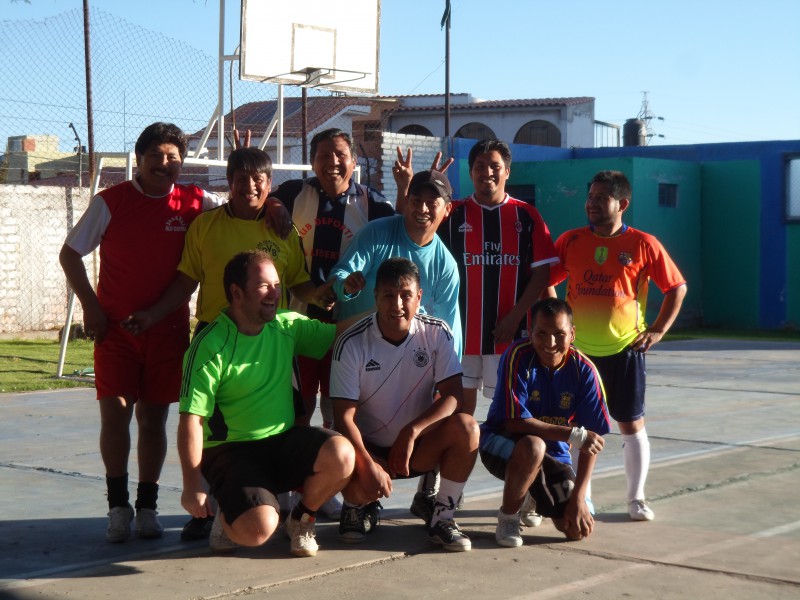 Am Nachmittag packte ich mein e-Book und einen Zvieri ein und machte mich auf die Suche nach einem Park, um zu lesen. Nach kurzem Spaziergang sah ich in einer Sportanlage einige Leute auf dem Betonplatz fussballspielen. Ich setzte mich auf die “Tribüne” und genoss das muntere Spielchen. Später forderten sie mich auf, auch ein bisschen mitzuspielen und so rannte auch ich nach einigen Monaten wieder mal einem Ball hinterher. Von ihrem Slang verstand ich zwar einiges nicht, bemerkte aber, dass zwischen dem vielen Cholo hier und Cholo da neu auch der Gringo seinen Platz im unablässigen Geschnatter fand. Schliesslich wurde es dunkel und sie sagten mir, sie seien jeden Mittwochnachmittag hier. Also bis nächste Woche =D