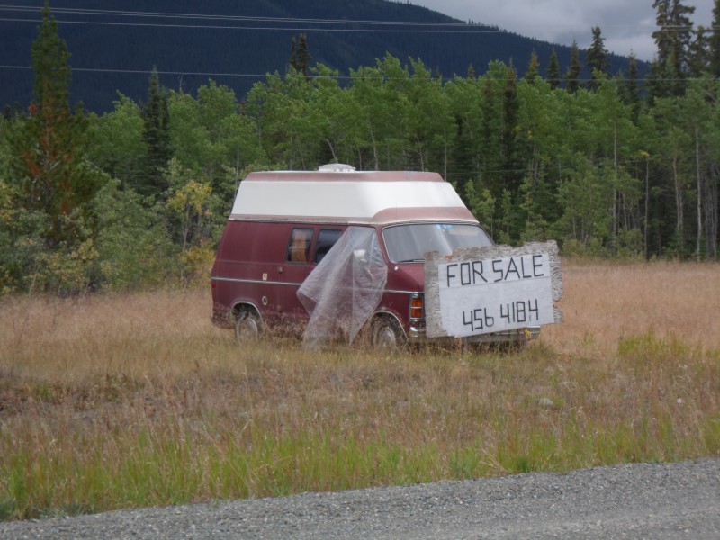 Am nächsten Tag zeigte mir Simon seine “Dredge”. Er hatte bereits in der Emme und in der Nähe von Disentis im Rhein Gold gewaschen. Auch am Moose Creek unten am Camping fand er etwas Goldstaub. Für ihn wird die Fahrt nach Dawson City und Chicken bestimmt besonders interessant. Nach frühstücken, packen und nochmals etwas plaudern, machten wir uns wieder auf: sie nach Norden, ich nach Süden. Nachdem ich von ihnen zwei Flaschen Wasser und eine Coop-Schokolade erhalten hatte, revanchierte ich mich mit ein paar Päckchen Trinkschokolade. Ich hatte mich nun definitiv entschlossen, erst mal zu versuchen, ein Stück per Anhalter zurückzulegen. Ich fuhr gleich mal zur Lodge, die von Bernern geführt wird. Dort fragte ich auch gleich mal nach, allerdings war das deutsche Paar zwar nach Süden unterwegs, wollte aber in Stewart Crossing den Silver Trail hoch fahren. So fuhr ich also mal die gut 27 km bis zur Kreuzung, ass eine Glace und versuchte mein Glück. Ziemlich schnell begann ich aber zu rechnen. Für die 350 km nach Whitehorse braucht ein Auto mindestens vier Stunden. Da es bereits 17.30 war und ich nicht Nachts nach einer Unterkunft suchen wollte, zeltete ich halt nochmals.