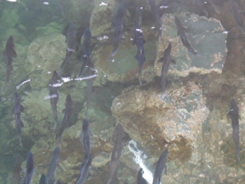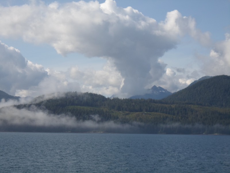 Das Feeling auf der Navimag-Route in Südchile war etwas besser, da jene Fahrt ohne Zwischenstopps durchlief. Im Norden waren diese Stopps vor allem in der Nacht etwas nervig. Dafür konnte ich aber bei Sitka die Lachswanderung beobachten und in Ketchikan zwei Bambus-T-Shirts kaufen. Mal schauen, ob die länger halten als das Merinozeugs. Auch Wale, Seelöwen usw. konnten wir von Zeit zu Zeit sehen, allerdings waren die meist etwas entfernt. Am letzten Nachmittag schwamm aber eine Gruppe Delfine längere Zeit direkt neben dem Schiff. Nicht begreifen konnte ich die Nachsicht der Fährbetreiber mit den vielen Passagieren, die weder Kabine noch Zelt hatten. Zwar ist es wirklich toll, dass erlaubt wird, mehr oder weniger überall auf dem Schiff zu schlafen. Allerdings verstehe ich nicht, dass zugelassen wird, dass z.B. das hinten offene, überdachte “Solarium” mit den Heizstrahlern für die ganze Fahrt besetzt wird. Dabei waren viele Liegen einfach den ganzen Tag von Gepäck belegt, während sich die Besitzer dann in einen zweiten Stuhl setzten oder legten. Im Kino musste jeweils darauf hingewiesen werden, dass am späten Vormittag Platz für die Kinobesucher gemacht werden soll und man dann still sein soll. Dass es auch anders geht, sah ich bei einer jungen Gruppe, die sich jeweils am Abend in der gepolsterten Kinderspielecke einquartierte, diese aber am Morgen für die Kleinen wieder räumte.