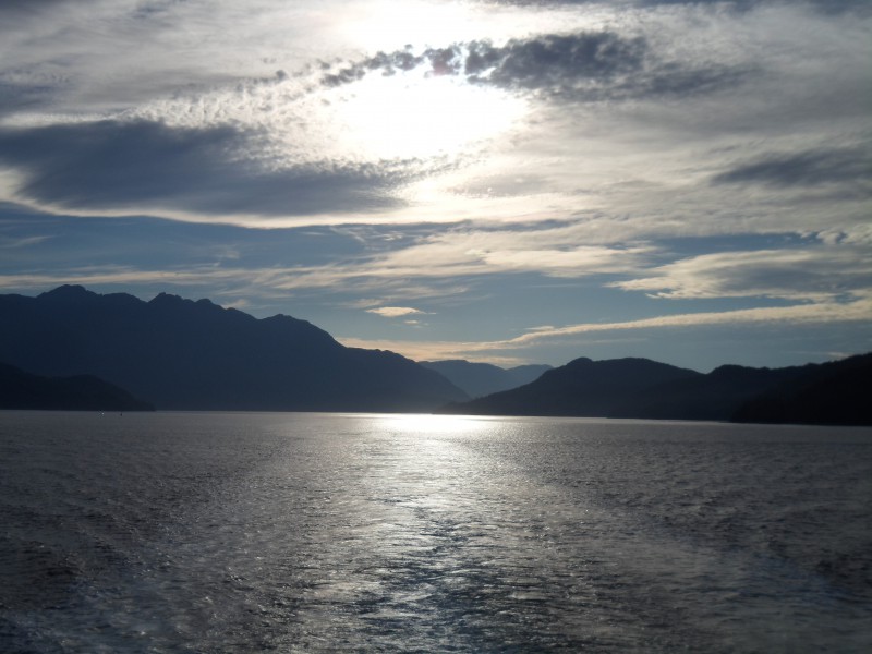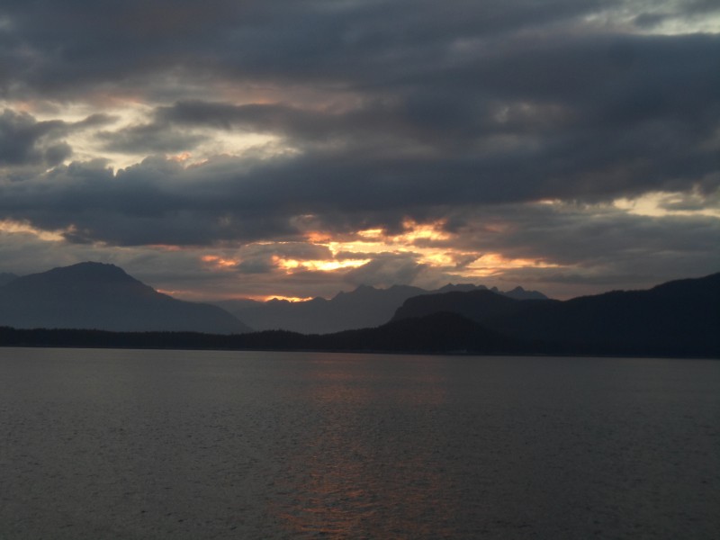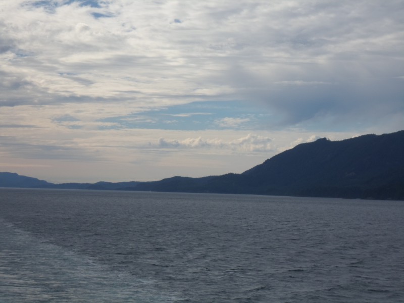 Am nächsten Tag war es dasselbe. Sie fuhr mich zur Wäscherei und holte mich am frühen Abend mit meinen Einkäufen wieder ab. Während die Waschmaschine arbeitete, ging ich zur Fähre, um für den kommenden Tag eine Fahrt nach Süden zu buchen. Die Fähre ging von Skagway nach Bellingham, südlich von Vancouver. Ich wollte eigentlich über Vancouver Island radeln. “Kein Problem. Umsteigen in Juneau, dann umsteigen in Prince Rupert…” “Danke, das reicht, ich nehme die Fähre nach Bellingham” 😉 Ansonsten erholte ich mich von den zwei anstrengenden Tagen und holte etwas Schlaf nach. Am Montag machte ich mich am frühen Nachmittag auf in die Stadt. Ich ass was, kaufte für die Fähre ein und ging in ein Internetcafé. Dort druckte ich die Reservationsbestätigung für das Hostel in Vancouver aus – vermutlich liegt der Ausdruck heute noch dort. Am Abend traf ich am Fährhafen dann wieder auf Dominik und Jasmin und kurz darauf konnten wir an Bord.
