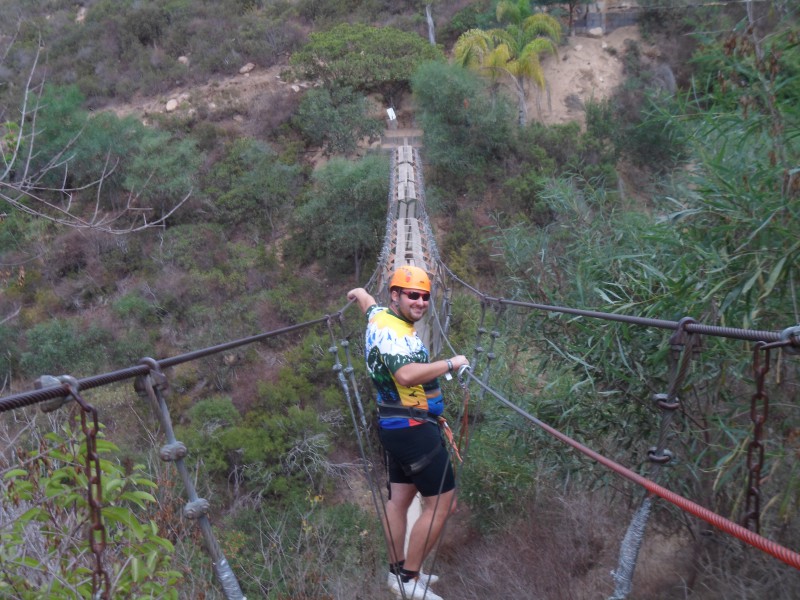 Dann machte ich mich endlich wieder auf. Ich wollte nur ein kurzes Stück fahren – im Hostel hatte ich nämlich den Canopy-Flyer gefunden. Am frühen Abend war ich dann auch schon am Ziel. Das Canopy war eine schöne Abwechslung, aber wie erwartet nicht mit einem Seilpark zu vergleichen. Einer der Guides machte mit meiner Kamera ein paar Fotos und meinte dann zum Spass was von einem Dollar pro Foto. Ich konterte, ich sei einverstanden, er solle mir einfach sagen, welche Fotos er von meiner Kamera möchte – das war dann wohl ein Punktsieg 😉 Danach musste ich mir einen Platz für die Nacht suchen. Da es in der Nähe sonst nichts gab, blieb ich im Park und da die Hüttchen und Tipis unverschämt teuer waren, zeltete ich auf dem verhältnismässig immer noch teuren Campingplatz. Dafür wäre auch die Poollandschaft im Preis inbegriffen gewesen. Nach dem Eindunkeln ein bisschen im Pool hängen tönte gut. Auf die Frage, ob das Wasser warm oder kalt sei, meinte die Angestellte treuherzig, das komme auf das Wetter an. Wenn die Sonne scheine, sei das Wasser wärmer, nachts kälter – meine Badehose blieb also trocken… Ich stellte mein Zelt auf und erinnerte mich kurz darauf an Lino vom Hostel und sein “die nächsten 10 Monate regnet’s hier nicht mehr”! Immerhing waren die Tische grossflächig überdacht, sodass ich Velo und Gepäck vor dem kräftigen Regen in Sicherheit bringen konnte. Kurz darauf tauchte Gilberto auf, der die Nachtschicht gefasst hatte. Er brachte mir etwas später eine Glühbirne für die Halterung am Tisch und so liess es sich trotz Regen ganz gut aushalten.